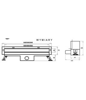 Odpływ liniowy ścienny 90 cm 2w1 – niski montaż 52 mm