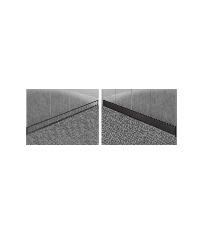 Czarny kolor odpływu liniowego ściennego sprawia, że jest on uniwersalnym dodatkiem do każdej łazienki. Idealnie sprawdza się w tych urządzanych w surowym stylu industrialnym, loftowym, minimalistycznym. Odpływ pasuje do czarnych kabin prysznicowych walk-in.