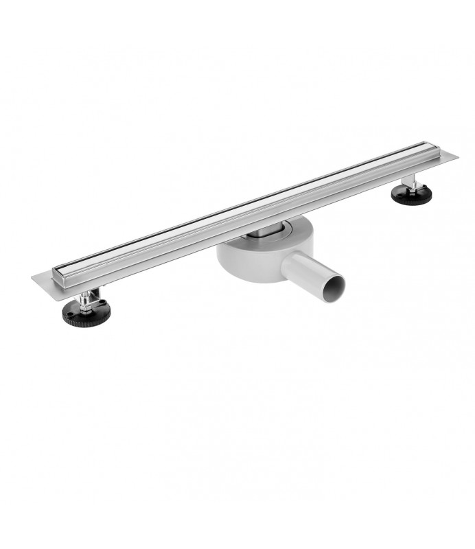 Odpływ podłogowy liniowy wyposażony w obrotowy syfon, umożliwiający precyzyjne dopasowanie kierunku odpływu do instalacji kanalizacyjnej.