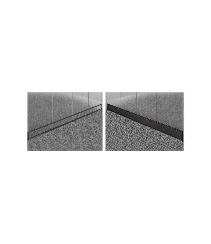 Odpływ liniowy ścienny o długości 50 cm w eleganckim czarnym wykończeniu. Model 2w1 umożliwia montaż na dwa sposoby: wklejenie dowolnej płytki ceramicznej lub zastosowanie czarnej maskownicy ze stali szczotkowanej. Każda z tych opcji zapewnia nowoczesne i stylowe wykończenie prysznica.