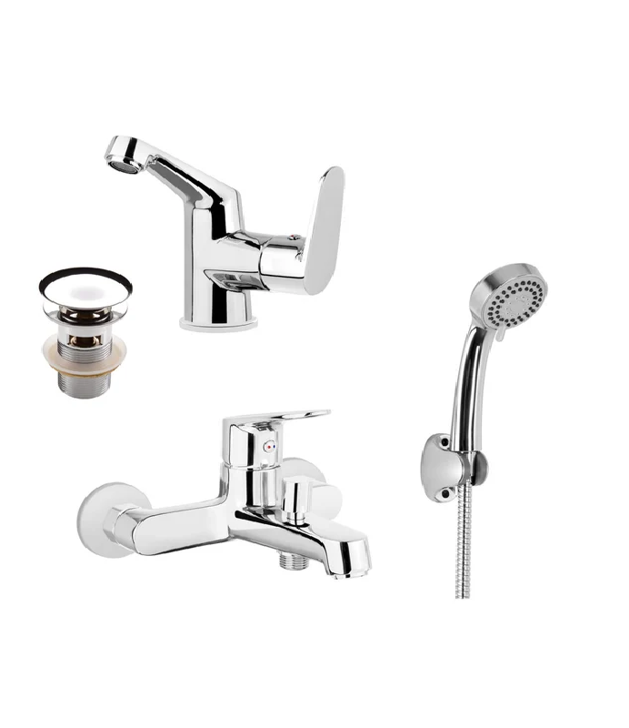 Zestaw 4w1: bateria umywalkowa + bateria wannowa + zestaw natryskowy Deante CHABER BGCA010M